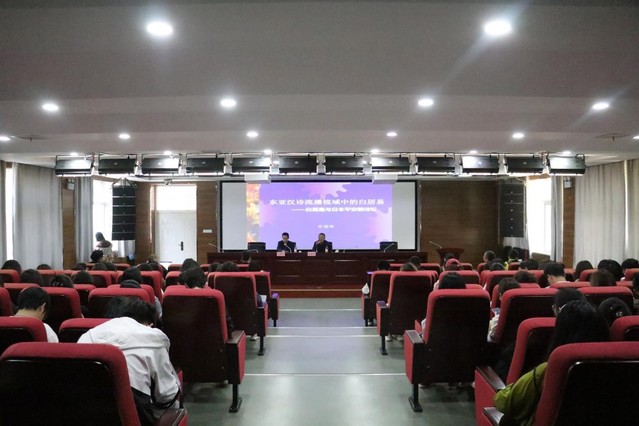 4月18日下午三點(diǎn),由合肥大學(xué)科研處、語(yǔ)言文化與傳媒學(xué)院主辦的南艷湖大講堂學(xué)術(shù)講座在一期六號(hào)樓報(bào)告廳順利舉行。本次講座邀請(qǐng)的主講嘉賓是浙江工業(yè)大學(xué)肖瑞峰教授,他的報(bào)告題目為“東亞漢詩(shī)流播視域中的白居易”。講座由語(yǔ)言文化與傳媒學(xué)院院長(zhǎng)丁增武教授主持,副院長(zhǎng)查金萍教授以及80余位師生共同參加。