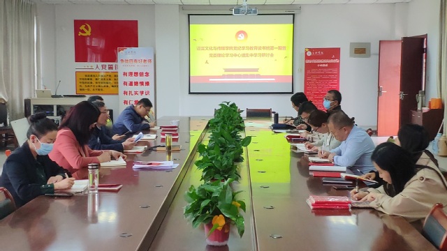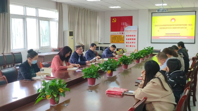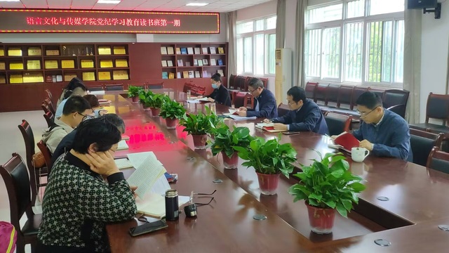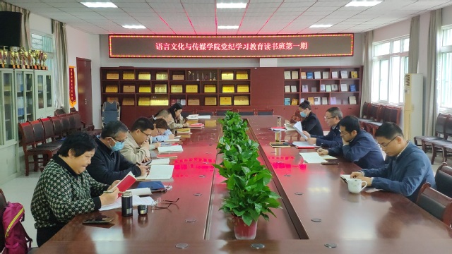 4月30日下午,語言文化與傳媒學院在一期五棟二樓會議室舉行黨紀學習教育讀書班暨黨委理論學習中心組集中學習研討會。學院領導班子成員、黨委委員、紀委委員、科級干部及各黨支部書記、系(中心)主任參加會議,會議由院黨委書記儲昭輝主持。