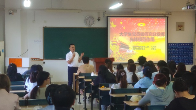 接著,丁增云從大學(xué)生黨員發(fā)揮先鋒模范作用的內(nèi)涵和具體實踐路徑進行講授,并以優(yōu)秀共產(chǎn)黨員的事跡激勵廣大青年學(xué)生,引導(dǎo)同學(xué)們向模范學(xué)習(xí)。