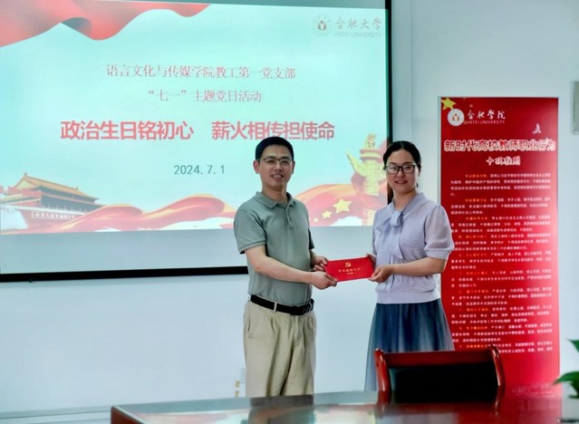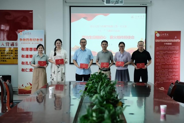 為慶祝中國(guó)共產(chǎn)黨成立103周年,進(jìn)一步增強(qiáng)黨員的政治榮譽(yù)感、責(zé)任感與歸屬感,推進(jìn)黨紀(jì)學(xué)習(xí)教育走深走實(shí),7月1日,語言文化與傳媒學(xué)院教工第一黨支部開展黨員集體過“政治生日”主題黨日活動(dòng)?;顒?dòng)由黨支部書記洪婧主持,支部全體黨員參加。