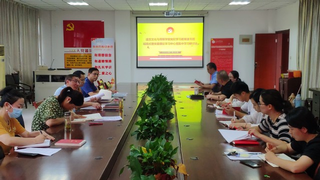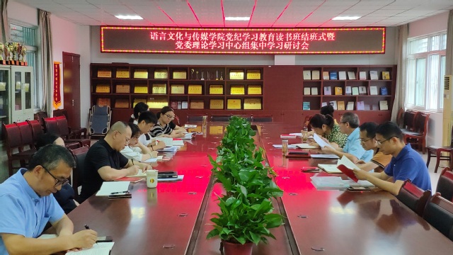 7月10日下午,語言文化與傳媒學院在學院大會議室舉行黨紀學習教育讀書班結班式暨黨委理論學習中心組集中學習研討會,學院領導班子成員、黨委委員、紀委委員、科級干部及各黨支部書記、系(中心)主任參加會議,會議由院黨委書記儲昭輝主持。
