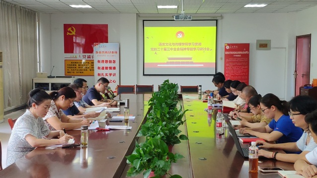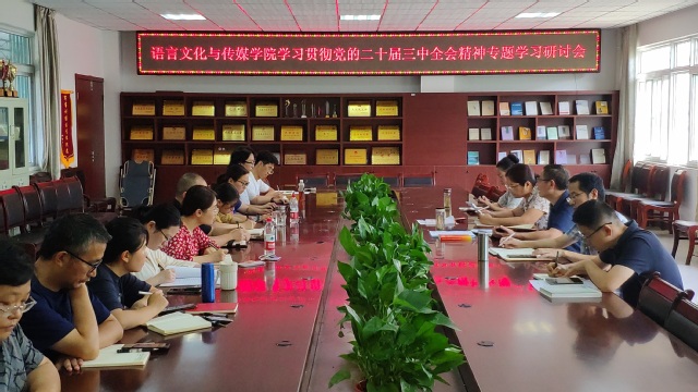 9月3日,語言文化與傳媒學(xué)院在學(xué)院大會議室召開黨委理論學(xué)習(xí)中心組會議,專題學(xué)習(xí)研討黨的二十屆三中全會精神。學(xué)院領(lǐng)導(dǎo)班子成員、黨委委員、紀委委員、科級干部及各黨支部書記、系(中心)主任參加,會議由院黨委書記儲昭輝主持。