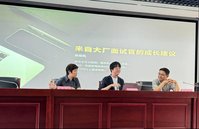 史亞風(fēng)首先向同學(xué)們介紹了當(dāng)下新興產(chǎn)業(yè)和大型企業(yè)的部門(mén)設(shè)置、職位要求、用人標(biāo)準(zhǔn),幫助即將畢業(yè)的大學(xué)生們了解和找準(zhǔn)自己的行業(yè)賽道。隨后,從自己擔(dān)任面試官的視角,史亞風(fēng)和同學(xué)們分享了頭部大廠面試經(jīng)驗(yàn),講述在面試中應(yīng)關(guān)注的重點(diǎn),強(qiáng)調(diào)實(shí)踐背景獲獎(jiǎng)證書(shū)等在面試中的重要性。