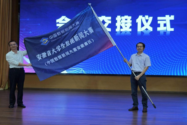 經(jīng)大賽組委會討論確定,下一屆安徽省大學生數(shù)據(jù)新聞大賽將由合肥大學語言文化與傳媒學院承辦。合肥大學語言文化與傳媒學院院長丁增武與巢湖學院文學與傳媒學院院長彭正生進行了會旗交接。丁增武院長代表大賽下屆承辦方致辭。承辦此項比賽將為我院進一步推動新聞傳播教育的發(fā)展、提升學子的專業(yè)實踐能力提供新的契機。