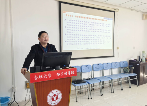 隨后,吳書記結(jié)合學(xué)習(xí)貫徹黨的二十屆三中全會(huì)精神傳達(dá)了任永校長(zhǎng)調(diào)研外國(guó)語(yǔ)學(xué)院的指示和要求。吳書記著重強(qiáng)調(diào)了任永校長(zhǎng)針對(duì)外國(guó)語(yǔ)學(xué)院的定位和特點(diǎn)提出的四點(diǎn)希望和要求,一是要明晰自身發(fā)展定位,繼續(xù)發(fā)揮專業(yè)優(yōu)勢(shì),著力提升學(xué)生的語(yǔ)言應(yīng)用能力,特別是“聽(tīng)”和“說(shuō)”的能力,為地方經(jīng)濟(jì)社會(huì)發(fā)展貢獻(xiàn)力量;二是要繼續(xù)為大眾學(xué)院、大陸班以及中德物流等中外合作專業(yè)學(xué)生提供語(yǔ)言支持,也要著力提升他們的語(yǔ)言應(yīng)用能力;三是要繼續(xù)修訂完善人才培養(yǎng)方案,創(chuàng)新專業(yè)發(fā)展路徑,以語(yǔ)言為橋梁,大力推進(jìn)“外語(yǔ)+”建設(shè),在“一帶一路”大背景下,培養(yǎng)具有跨學(xué)科背景的復(fù)合型人才;四是要優(yōu)化師資隊(duì)伍結(jié)構(gòu),強(qiáng)化教學(xué)與教研能力,進(jìn)一步深化內(nèi)涵建設(shè),培育和打造高水平教師隊(duì)伍。全院師生要堅(jiān)定信心,積極探索適合外國(guó)語(yǔ)學(xué)院特點(diǎn)的新文科發(fā)展路徑。