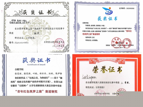 在第八屆安徽省“互聯(lián)網(wǎng) +”大學(xué)生創(chuàng)新創(chuàng)業(yè)大賽“青年紅色筑夢(mèng)之旅”賽道中,她深度參與的作品《“以戲之音,為你而行”——基于“徽戲苑”戲曲文化傳播產(chǎn)業(yè)的鄉(xiāng)村振興方案》脫穎而出,斬獲省賽銀獎(jiǎng)。該項(xiàng)目巧妙地將戲曲文化與鄉(xiāng)村振興相結(jié)合,既展現(xiàn)了傳統(tǒng)文化的魅力,又探索出了產(chǎn)業(yè)發(fā)展的新路徑。