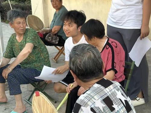 調(diào)研期間,伴隨著夏日的微風(fēng),“合語筑夢”鄉(xiāng)村振興團(tuán)在指導(dǎo)老師張正華的帶領(lǐng)下,圍繞教育、醫(yī)療、文化設(shè)施、養(yǎng)老等公共服務(wù)領(lǐng)域,開展為期兩天的實(shí)地調(diào)研。團(tuán)隊(duì)通過入戶走訪、發(fā)放問卷等形式,收集居民對公共服務(wù)資源配置的滿意度、公共服務(wù)需求及改進(jìn)建議等方面內(nèi)容,旨在收集第一手資料,為后續(xù)分析提供數(shù)據(jù)支撐。