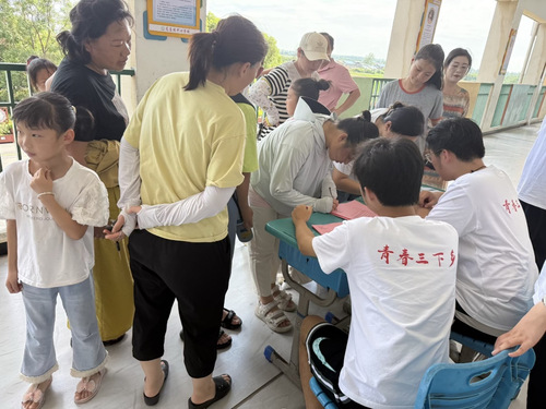 當(dāng)日中午,團隊順利抵達高店鎮(zhèn)。簡單的休整后,成員們很快就投入到暑期少年宮的籌備工作中。下午兩點三十分,破冰活動在少年宮如期舉行,現(xiàn)場氣氛熱烈。50余名孩子在家長的陪同下踴躍報名,團隊成員們顧不上擦拭額角的汗水,以飽滿的熱情接待每一位學(xué)生和家長。