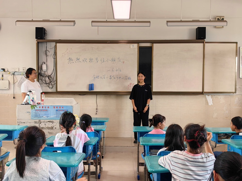 破冰活動精心設(shè)計了自我介紹、擊鼓傳花、你畫我猜、看動畫學(xué)英語等互動環(huán)節(jié)。讓孩子們不再拘束,從剛開始的羞澀變得自信大方,與此同時,大家也開始積極參與各類課堂學(xué)習(xí)與互動。孩子們的笑容與熱情也讓“合語筑夢”團隊的成員們信心倍增,更加堅定了他們?yōu)猷l(xiāng)村振興貢獻力量的決心。本次活動也拉近了大學(xué)生志愿者與當(dāng)?shù)厍嗌倌甑木嚯x,為后續(xù)支教活動奠定良好基礎(chǔ)。