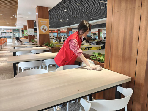 本次活動(dòng)具體分為兩個(gè)項(xiàng)目。活動(dòng)一是食堂秩序維護(hù)。志愿者們分工協(xié)作,認(rèn)真清理食堂各個(gè)角落,不僅處理餐桌上殘留食物,還清理地面油漬與垃圾,讓食堂環(huán)境更整潔舒適。活動(dòng)二是規(guī)范停車。志愿者們各司其職、緊密配合,熱情引導(dǎo)學(xué)生規(guī)范停車,對(duì)停放不規(guī)范車輛耐心擺放整齊,使食堂門口停車場(chǎng)景變得井然有序、道路通暢。