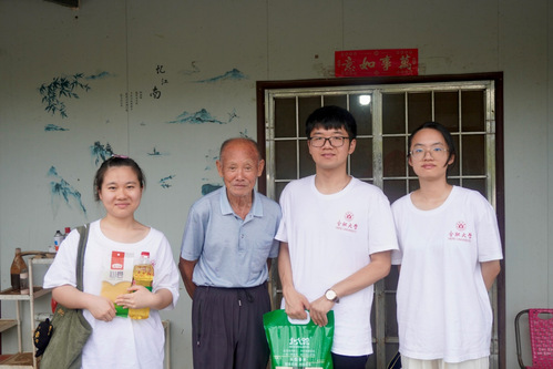 為表達(dá)對(duì)老黨員們的深情敬意和感恩之情,增強(qiáng)大學(xué)生的榮譽(yù)感、歸屬感、使命感,賡續(xù)紅色基因,傳承優(yōu)良傳統(tǒng),7月10日上午,外國(guó)語(yǔ)學(xué)院“語(yǔ)”你同行鄉(xiāng)村振興團(tuán)在指導(dǎo)老師張正華的帶領(lǐng)下走訪(fǎng)慰問(wèn)了三位老黨員代表,憶崢嶸歲月,感紅色情懷。