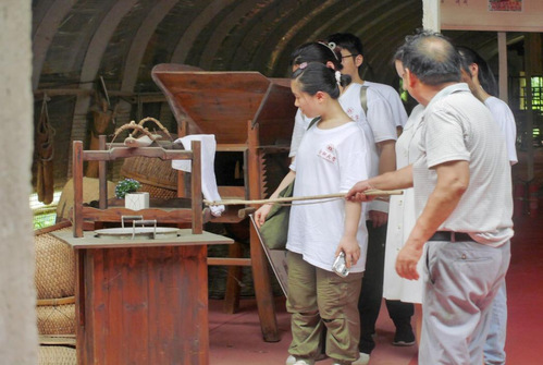 79日下午,實踐團隊先后來到江淮民俗博物館和引江濟淮工程渡槽進(jìn)行參觀調(diào)研。民俗館內(nèi),水車、木屐、紡棉車一件件具有農(nóng)耕記憶的物件訴說著高店鎮(zhèn)的歷史變遷與文化傳承,讓學(xué)生們仿佛穿越時空,近距離感受傳統(tǒng)農(nóng)耕文化,學(xué)習(xí)農(nóng)業(yè)知識,了解肥西當(dāng)?shù)丶敖吹貐^(qū)民俗風(fēng)情。