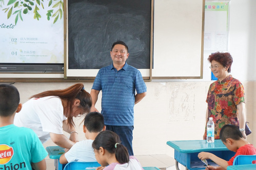 自外國語學(xué)院2024年暑期“三下鄉(xiāng)”社會實踐活動開展以來,學(xué)院領(lǐng)導(dǎo)高度重視,持續(xù)關(guān)注實踐隊伍動態(tài)及進展。7月8日下午三點,外國語學(xué)院黨委書記吳孔寶、院長葉旭萍、學(xué)工辦主任李發(fā)俊一行赴肥西縣高店鎮(zhèn)中心學(xué)校對“語”你同行鄉(xiāng)村振興團進行指導(dǎo)慰問。