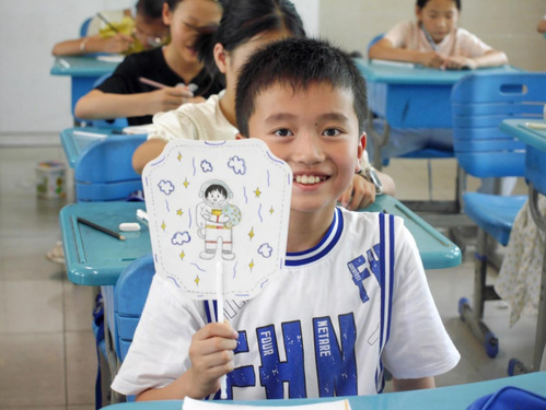 在小扇之上,繪大夢于心。在團(tuán)隊(duì)成員介紹完繪畫主題“我的夢想”后,孩子們圍坐在教室里紛紛投入了畫扇的創(chuàng)作。他們熱情地向老師分享自己的理想:救死扶傷的白衣天使、醉心研究的科學(xué)家、妙筆生花的藝術(shù)家……一切天馬行空的理想此刻都在小小的扇面上用童稚的線條和鮮艷的顏色做出了生動(dòng)的展示。孩子們用豐富的想象和細(xì)膩的畫筆,將心中的夢想繪制在扇子上,每一筆每一畫都流露出他們對(duì)未來無限可能的期許。