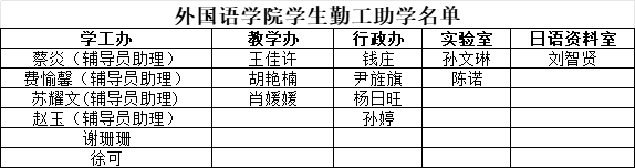 外國(guó)語(yǔ)學(xué)院勤工助學(xué)名單