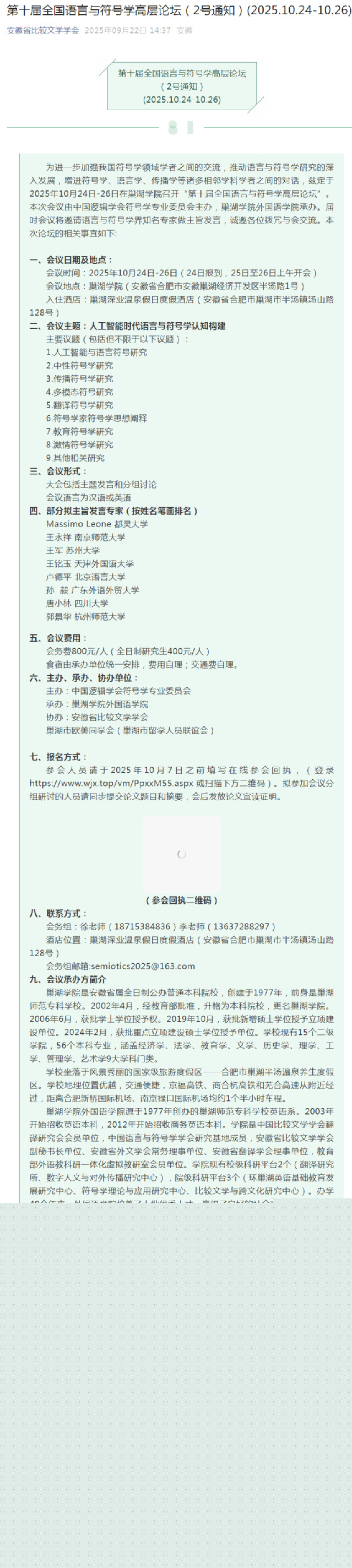 第十屆全國(guó)語(yǔ)言與符號(hào)學(xué)高層論壇(2號(hào)通知)(2025.10.24-10.26)