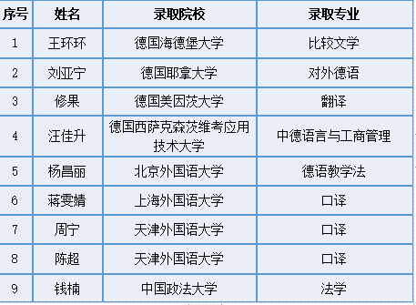 自2015年以來,47名畢業(yè)生被國內(nèi)外高校錄取為碩士研究生,其中30名就讀于北京外國語大學(xué)、上海外國語大學(xué)等國內(nèi)一流高校德語專業(yè),17名畢業(yè)生赴德國海德堡大學(xué)、耶拿大學(xué)、紐倫堡大學(xué)等著名高校留學(xué)深造;專業(yè)相關(guān)度達(dá)91.5%,年均升學(xué)率22.4%,高出省內(nèi)總體升學(xué)率1倍。
