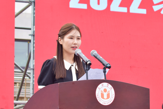 外國語學(xué)院19英語1班郭兆薇同學(xué)作為老生代表上臺發(fā)言,她講述了參軍入伍給自己帶來的成長改變,希望學(xué)弟學(xué)妹們珍惜時光,在大學(xué)校園里努力學(xué)習(xí)和歷練,做一個對社會有益的人。同時她表示,要感謝父母的支持、學(xué)校和老師提供的平臺和機會,讓她得以成為更好的自己。