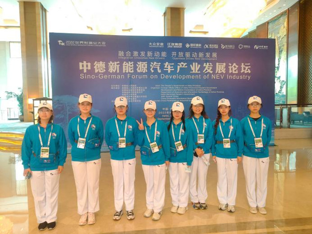 2022年9月19日至21日,世界制造業(yè)大會(huì)期間,由安徽省人民政府外事辦公室主辦的中德新能源汽車發(fā)展平行論壇與新能源汽車和智能網(wǎng)聯(lián)汽車產(chǎn)業(yè)鏈對接會(huì)在合肥香格里拉酒店順利舉辦。作為安徽省重要的中德教育合作示范基地,受安徽省外辦、市外辦與市共青團(tuán)委委托,我院德語專業(yè)和英語專業(yè)的12名優(yōu)秀學(xué)子參與了本次大會(huì)的相關(guān)外事服務(wù)工作。