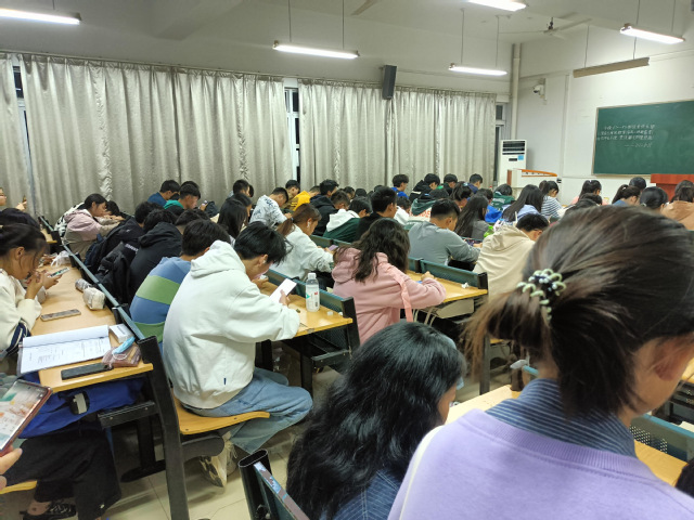 日傍西山,時至晚上六點半,外院學子們再次于一期八棟教學樓開始晚自習。“問渠那得清如許,為有源頭活水來。”一整天的學習成果需要及時的復習鞏固,才能真正地內(nèi)化于心。在晚自習中,外院學子們或伏案讀書,或進行錄音。筆尖沙沙地穿行于紙頁上,外院學子們認真積極地完成一項項的安排。“溫故而知新,可以為師矣?!蓖碜粤暤淖灾鲗W習,不但有助于消化當天所學的知識,加深對知識的理解,更有利于夯實基礎(chǔ),建立起知識網(wǎng)絡(luò)。