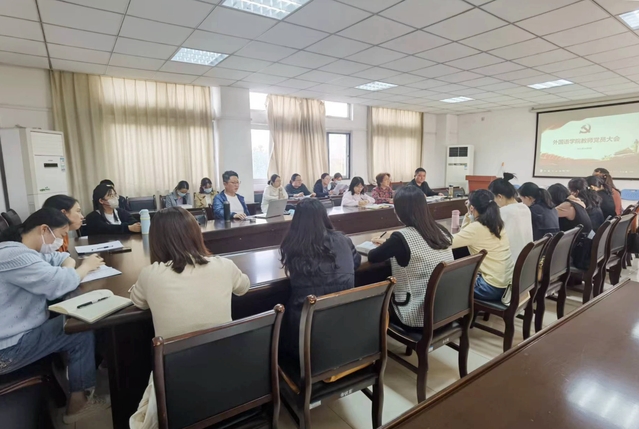 為深入學習宣傳貫徹落實黨的二十大精神,在全體教師黨員中統(tǒng)一思想,凝聚共識,團結奮進,11月8日下午3時,外國語學院于8棟三樓會議室召開全體教師黨員大會,院領導班子圍繞深入學習宣傳貫徹落實黨的二十大精神講授專題黨課,會議由院黨委副書記吳孔寶主持。