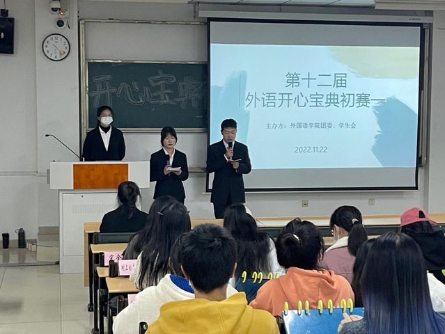 11月22日晚六點(diǎn)四十五分,外國(guó)語(yǔ)學(xué)院第十二屆“開心寶典”初賽第一場(chǎng)在一期五棟101順利舉辦,共有八支隊(duì)伍參加本次比賽。