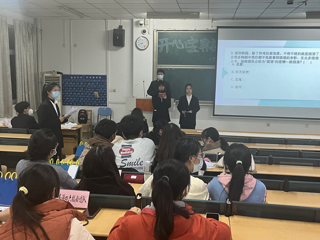 11月24日晚上六點(diǎn)四十五分,由外國(guó)語學(xué)院團(tuán)委組織的第十九屆外語文化周第十二屆“外語開心寶典”初賽第二場(chǎng)在一期五棟101順利舉辦,共有八支隊(duì)伍參加本次比賽。