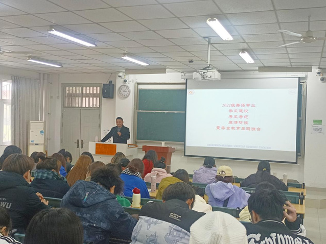吳老師強(qiáng)調(diào),同學(xué)們要加強(qiáng)自我管理、堅(jiān)持晨讀和晚自習(xí)、不斷提升專(zhuān)業(yè)能力,并以身邊優(yōu)秀的同學(xué)為榜樣,激勵(lì)自己不斷進(jìn)步。其次,要增強(qiáng)疫情防控第一責(zé)任人意識(shí),加強(qiáng)個(gè)人防護(hù),非必要不出校。吳老師列舉了網(wǎng)絡(luò)詐騙和電信詐騙的典型案例,提醒大家要進(jìn)一步提高防范意識(shí)。關(guān)于消防安全,吳老師結(jié)合前期的消防演練,帶領(lǐng)大家總結(jié)經(jīng)驗(yàn)梳理不足。臨近期末,吳老師要求大家抓緊復(fù)習(xí),在各種考試中嚴(yán)格遵守相關(guān)法律與法規(guī),誠(chéng)信參考,嚴(yán)禁作弊。最后,他對(duì)同學(xué)們寄予厚望,希望大家樹(shù)立遠(yuǎn)大理想并胸懷天下,以善良和友愛(ài)對(duì)待自己、他人和這個(gè)社會(huì)。
