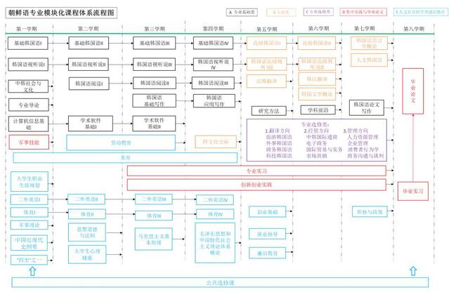 1. 韓語(yǔ)專業(yè)技能模塊:專業(yè)導(dǎo)論(韓)、基礎(chǔ)韓語(yǔ)、高級(jí)韓語(yǔ)、韓語(yǔ)視聽說韓語(yǔ)閱讀、基礎(chǔ)韓語(yǔ)寫作應(yīng)用韓語(yǔ)寫作、韓漢互譯、托業(yè)英語(yǔ)