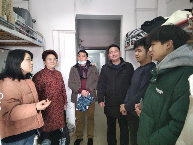 2023年2月12日上午10點(diǎn),新學(xué)期開學(xué)之際,外國語學(xué)院院長葉旭萍、黨委副書記吳孔寶、副院長李潔、學(xué)工辦主任李發(fā)俊、團(tuán)委副書記張正華、輔導(dǎo)員王雨濛一同走訪了學(xué)生宿舍。