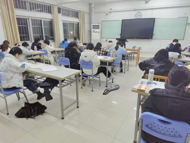 傍晚時分,結束了一天課程的同學們在六點三十分再次來到八棟教學樓進行晚自習。“學問勤中得,螢窗萬卷書?!蓖碜粤晻r,同學們埋頭伏案,奮筆疾書,認真完成作業(yè)并整理當天的學習內容。晚自習是外院學子學習的重要環(huán)節(jié),及時進行復習鞏固,能幫助同學們提高學習效率,深化對知識的理解,從而加強記憶。在晚自習巡查過程中,李老師抽查了多個教室,仔細詢問了同學們的學習情況,并勉勵同學們充分利用晚自習時間,嚴格要求自己。