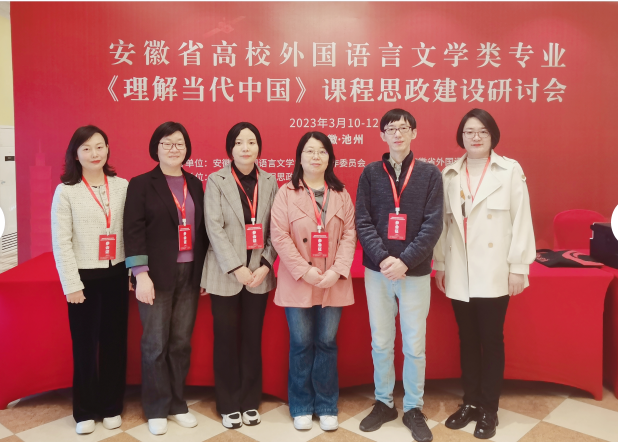 2022年3月10日到12日,外國語學(xué)院副院長李潔、外國語學(xué)院教學(xué)督導(dǎo)組組長湯琳老師、英語專業(yè)徐天戍老師、學(xué)院科研秘書朝鮮語專業(yè)宗艷艷老師、學(xué)院督導(dǎo)日語專業(yè)鮑德裕老師和德語專業(yè)黃新偉老師參加了安徽省高校外國語言文學(xué)類專業(yè)《理解當(dāng)代中國》課程思政建設(shè)研討會。