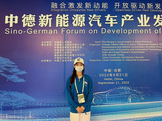 奮斗是青春最亮麗的底色,行動是青年最有效的磨礪。有責(zé)任有擔(dān)當(dāng),青春才會發(fā)光。為了將理論運用到實際,提高專業(yè)素養(yǎng),殷牧嵐參加了“語言大白·皖美譯心”志愿活動,疫情期間線上為在皖外國友人提供翻譯和答疑服務(wù)。這不僅鍛煉了她的外語溝通能力,而且拉近了中外人文交流距離,為促進中外文化交流、展現(xiàn)中國風(fēng)采貢獻了一份力量。2021年,殷牧嵐還積極報名參加世界制造業(yè)大會志愿者,雖遺憾落選,但她并未氣餒。經(jīng)過一年的努力,她成功入選,并擔(dān)任了2022年世界制造業(yè)大會翻譯志愿團體領(lǐng)隊。大會對外語翻譯志愿者要求極高,作為領(lǐng)隊,殷牧嵐責(zé)任重大,既要做好自身的志愿服務(wù)工作,又要協(xié)調(diào)管理好志愿者。面對層層壓力,殷牧嵐迎難而上,最終憑借優(yōu)異的服務(wù)和管理協(xié)調(diào)能力于同年得市級優(yōu)秀志愿者嘉獎,給同學(xué)們樹立了良好的榜樣。而這次社會實踐帶給她的不止是榮譽和掌聲,還有難能可貴的人生經(jīng)驗。在服務(wù)過程中,她不僅學(xué)會了嚴(yán)謹細致、三思而行,還學(xué)會了耐心溝通、注重協(xié)作。在作為合肥學(xué)院志愿者代表接受媒體采訪時,她提到:奉獻自己的快樂是其它快樂無法比擬的。也是在如此腳踏實地的體悟中,她領(lǐng)會到知止有定,篤信而行,為繪制獨屬于她的斑斕青春,實現(xiàn)中華民族偉大復(fù)興夢,唯有堅定強大信念,行穩(wěn)致遠,方能始終。