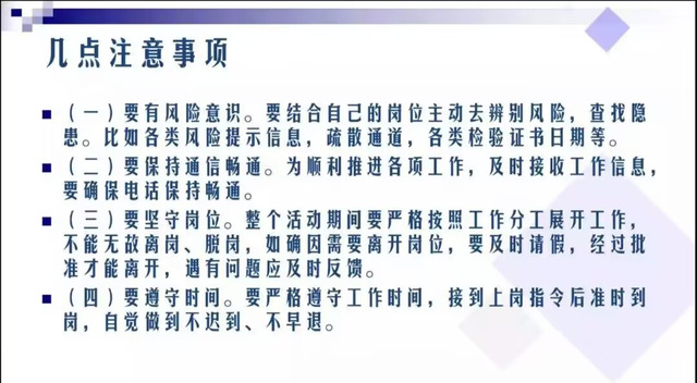 本次培訓(xùn)共計(jì)三項(xiàng)議程。前兩個(gè)階段,主講人圍繞消防安全和應(yīng)急安全提醒志愿者們要有消防風(fēng)險(xiǎn)意識(shí),隨時(shí)保持通信暢通,以便應(yīng)對(duì)突發(fā)情況。最后一項(xiàng)會(huì)議內(nèi)容是外事培訓(xùn)。關(guān)于外事培訓(xùn),主講人首先強(qiáng)調(diào)“八個(gè)原則”,要求志愿者們立足正確的政治立場(chǎng),懷揣飽滿的熱情,儲(chǔ)備專業(yè)知識(shí),提前做好服務(wù)規(guī)劃,禮貌得體地進(jìn)行溝通交流。除此以外,主講人強(qiáng)調(diào)志愿者們需提前熟悉相關(guān)背景資料,以便更好為外賓提供服務(wù)。