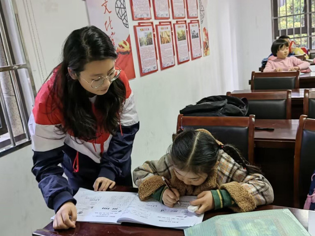 每天下午四點(diǎn),兩名志愿者會(huì)準(zhǔn)時(shí)到達(dá)社區(qū),在相關(guān)人員的帶領(lǐng)下來到學(xué)習(xí)地點(diǎn)。首先,孩子們獨(dú)立自主完成作業(yè),對于作業(yè)完成過程中遇到的問題,志愿者們用淺顯易懂的方式答疑解惑,并且分享自己的學(xué)習(xí)心得與經(jīng)驗(yàn)。作業(yè)完成后,志愿者們還通過跳舞、唱歌、做游戲等互動(dòng)方式營造輕松愉悅的氛圍,鼓勵(lì)孩子們積極參與活動(dòng),勇敢地表達(dá)自己的想法。