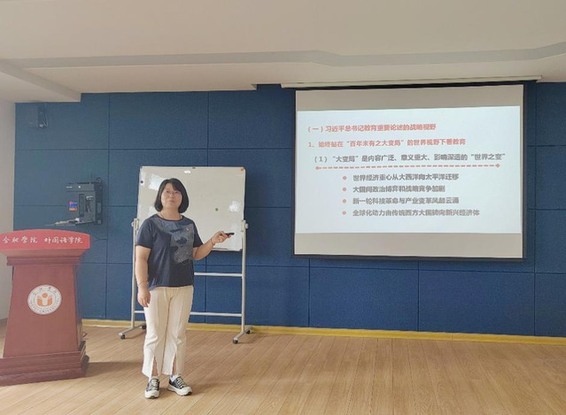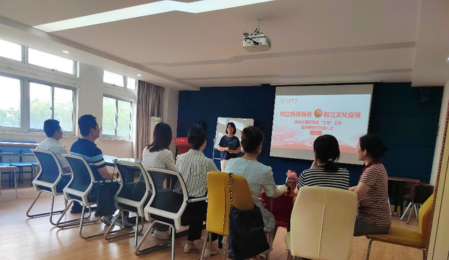 為全面推動習(xí)近平新時代中國特色社會主義思想進(jìn)教材、進(jìn)課堂、進(jìn)頭腦,全面深入準(zhǔn)確學(xué)習(xí)領(lǐng)會習(xí)近平新時代中國特色社會主義思想的理論品格和精髓要義,自信自強(qiáng)做好黨的二十大精神理論武裝,2023年6月20日下午,外國語學(xué)院黨委統(tǒng)戰(zhàn)委員、副院長李潔給教工第二黨支部全體黨員講授了題為“樹立民族自信,樹立文化自信——推動外國語學(xué)院‘三進(jìn)’工作,培養(yǎng)新時代外語人才”的專題黨課。