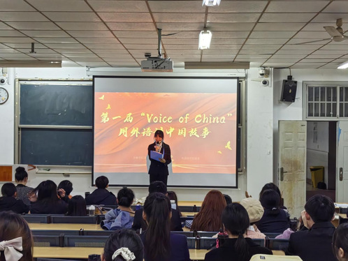 1120日晚上18:30合肥學(xué)院第一屆Voice of China用外語(yǔ)講中國(guó)故事決賽在一期5101教室順利舉行本次活動(dòng)特邀外國(guó)語(yǔ)學(xué)院副院長(zhǎng)李潔、日語(yǔ)系教師鮑德裕、德語(yǔ)系教師李菲菲擔(dān)任評(píng)委,同時(shí)設(shè)有大眾評(píng)審團(tuán)