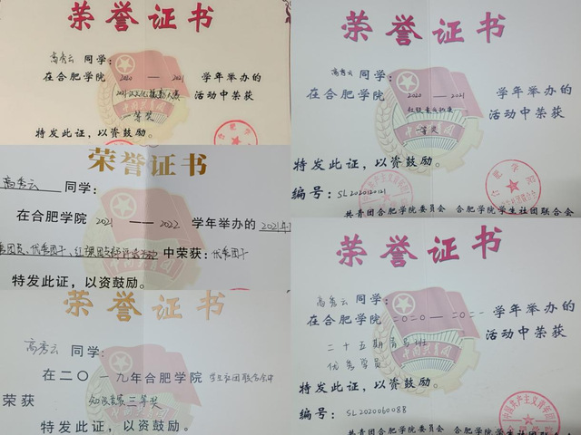 磋砣莫遺韶光老,人生惟有讀書好。在整個大學(xué)過程中,高秀云成績優(yōu)秀,同時也參加了許多比賽,獲得過不少獎項(xiàng)。她曾經(jīng)獲得了外研社杯閱讀寫作大賽二等獎,三等獎和第九屆挑戰(zhàn)杯大學(xué)生課外學(xué)術(shù)科技作品校級二等獎等;在班集體和校組織中她的表現(xiàn)也十分亮眼,是2021年度優(yōu)秀團(tuán)干和二十五期、二十六期青馬班優(yōu)秀學(xué)員。