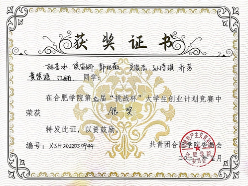 除了理論學(xué)習(xí),喬芳還注重實踐能力的培養(yǎng)。她積極參加各種實驗和實踐活動,通過親身實踐來加深對知識的理解和掌握。在校期間,她參與了合肥學(xué)院第九屆“挑戰(zhàn)杯”大學(xué)生創(chuàng)業(yè)競賽計劃,并榮獲銀獎。一念既出,萬山無阻。盡管參與挑戰(zhàn)杯的過程中仍有困難,她仍一心堅持,最終抵達(dá)成功的彼岸。