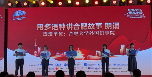 5月25日,由中國國家創(chuàng)新與發(fā)展戰(zhàn)略研究會、中國教育電視臺和新航道國際教育集團聯(lián)合主辦的第四屆“用英語講中國故事”活動合肥站城市展演暨頒獎典禮順利舉行經(jīng)過前期合肥大學校賽階段的選拔,最終外國語學院陳露和湯雨柔兩名學生脫穎而出晉級城市展演賽,用流利的英語和精彩的中華經(jīng)典才藝展示了合肥的“文里文氣”與“科里科氣”,彰顯了合肥的獨特魅力。