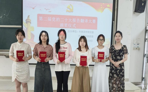 6月13日中午12時10分,第二屆黨的二十大報告翻譯大賽頒獎典禮于5棟101教室順利舉辦。本次頒獎典禮由外國語黨委主辦、院團委承辦,旨在鼓勵和嘉獎比賽中獲獎的選手。外國語學院黨委正科級組織員李菲菲,學工辦主任李發(fā)俊和院團委副書記張正華出席了本次頒獎典禮。