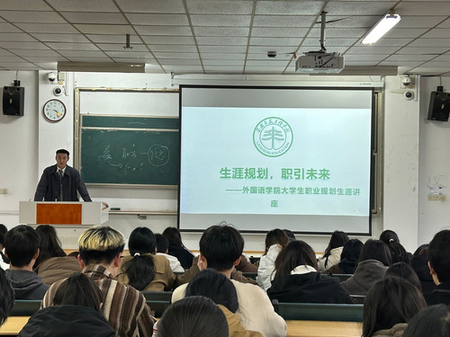 11月23日下午4時(shí),外國(guó)語(yǔ)學(xué)院于一期5棟101教室舉行了秋季學(xué)期企業(yè)高管進(jìn)校園活動(dòng)。此次活動(dòng)特別邀請(qǐng)到安徽來(lái)盛日語(yǔ)培訓(xùn)學(xué)校的人事經(jīng)理趙康為全體大一新生開(kāi)展了職業(yè)生涯規(guī)劃講座。參加講座的還有外國(guó)語(yǔ)學(xué)院張正華及王雨濛老師。