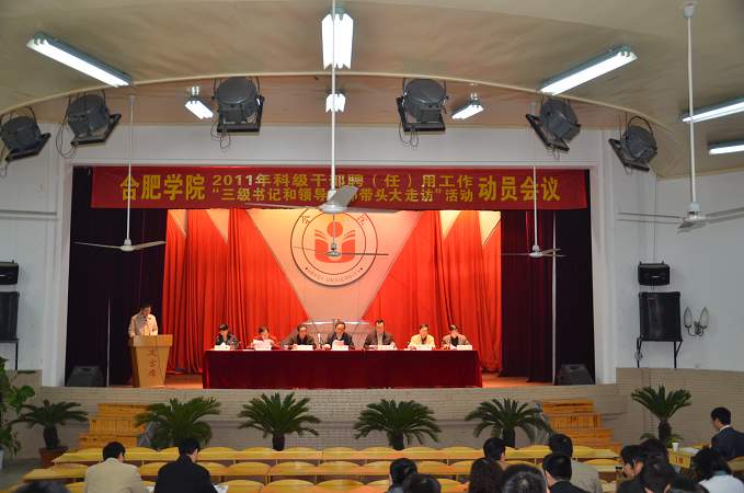 院“兩辦”主任劉樟樹宣讀了《合肥學(xué)院“三級書記和領(lǐng)導(dǎo)干部帶頭大走訪”活動實施方案》。方案指出,為深入貫徹黨的十七屆五中、六中全會和胡錦濤總書記“七一”重要講話精神,切實做好新形勢下的群眾工作,根據(jù)省委辦公廳《關(guān)于開展以“訪民情、匯民智、釋民惑、解民憂、惠民生”為主題的“五級書記帶頭大走訪”活動的通知》和《合肥市“五級書記帶頭大走訪”活動實施方案》的要求,結(jié)合學(xué)院實際,我院要認(rèn)真組織開展“三級書記和領(lǐng)導(dǎo)干部帶頭大走訪”活動。此項活動具體分為“準(zhǔn)備動員”、“組織實施”、“總結(jié)提高”三個階段進行,旨在促進各級黨組織負(fù)責(zé)人和領(lǐng)導(dǎo)干部深入基層、深入黨員和群眾、深入工作一線,加強同黨員和群眾的聯(lián)系與交流,增進同黨員和群眾的感情;了解一線工作情況,總結(jié)、宣傳和推廣一線的工作經(jīng)驗;聽取基層單位和群眾意見,改進有關(guān)工作;發(fā)現(xiàn)并解決師生員工在工作、學(xué)習(xí)、生活中的實際問題;牢固樹立群眾觀點,進一步轉(zhuǎn)變作風(fēng),提升群眾工作水平和領(lǐng)導(dǎo)工作能力,推動學(xué)院又好又快發(fā)展。