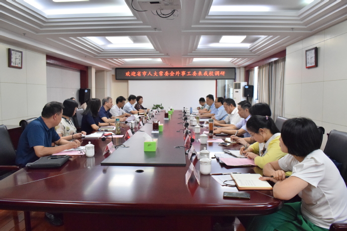 9月17日,由省人大常委會委員、外事工委主任黃曉求帶領(lǐng)的省市人大常委會外事工委一行來我校調(diào)研。我校在行政樓九樓東會議室召開調(diào)研座談會,校黨委書記王其東、副校長盧平出席會議,相關(guān)職能部門和二級學院負責人參加會議。