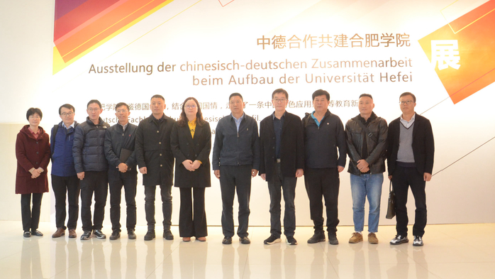 會后,與會人員一同參觀我校中德合作成果展。參觀過程中,趙慶龍十分認(rèn)可我?!暗胤叫?、應(yīng)用型、國際化”的辦學(xué)定位,并對我校中德合作辦學(xué)、構(gòu)建高質(zhì)量應(yīng)用型人才培養(yǎng)模式等方面有了更加深入的了解。