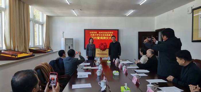 吳春梅首先來到池州生態(tài)經(jīng)濟學(xué)校,與李軍共同見證了我校學(xué)生處與該校簽署共建大學(xué)生社會實踐基地協(xié)議,并為基地揭牌。在隨后舉行的深化校地合作座談會上,李軍代表石臺縣政府充分肯定了當(dāng)下校地緊密合作的工作態(tài)勢,對當(dāng)?shù)亟?jīng)濟發(fā)展現(xiàn)狀、產(chǎn)業(yè)機制建設(shè)、隊伍建設(shè)、茶文化和農(nóng)產(chǎn)品包裝設(shè)計等情況進一步做了詳細(xì)介紹。他認(rèn)為合肥學(xué)院是一所辦學(xué)特色鮮明的應(yīng)用型高水平大學(xué),前期學(xué)校多次、多方位組織老師開展的農(nóng)產(chǎn)品包裝設(shè)計等工作卓有成效,希望能在石臺縣的發(fā)展中繼續(xù)吸引人才,為石臺縣的鄉(xiāng)村振興、茶葉發(fā)展提供產(chǎn)品設(shè)計、品牌塑造、人才培養(yǎng)等支持,進一步拓展合作的深度和廣度,實現(xiàn)雙方共贏。