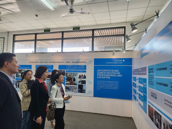 調(diào)研期間,吳焰還參觀了中德合作共建合肥學(xué)院展,了解了我校對(duì)德教育合作歷史和新時(shí)期發(fā)展機(jī)遇。