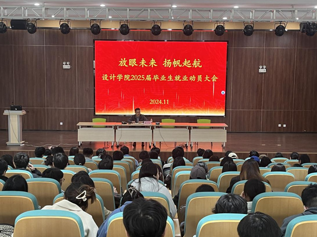 為扎實(shí)推進(jìn)學(xué)院2025屆畢業(yè)生就業(yè)工作,幫助學(xué)生樹立正確就業(yè)觀念,11月8日中午,設(shè)計(jì)學(xué)院在55棟205報(bào)告廳召開2025屆畢業(yè)生就業(yè)動員大會,學(xué)院黨委書記魯先瑾、副書記吳云與2025屆畢業(yè)班輔導(dǎo)員出席會議,2025屆全體畢業(yè)生參加會議。會議由吳云副書記主持。
