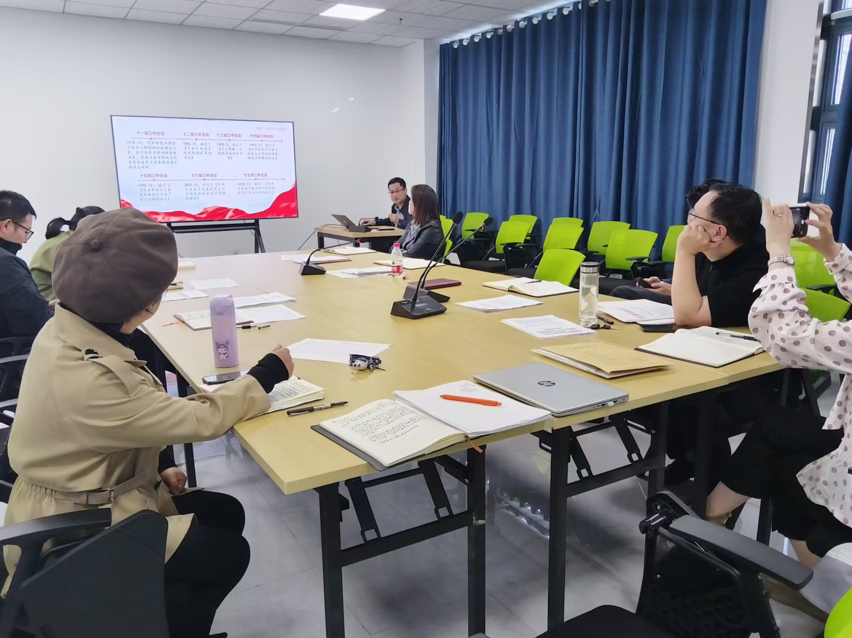 2024年11月12日下午,設(shè)計(jì)學(xué)院黨委在55-207會(huì)議室召開(kāi)黨委理論中心組學(xué)習(xí)會(huì)。黨委書(shū)記魯先瑾為中心組講述了一堂生動(dòng)而深刻的黨的二十屆三中全會(huì)精神專題黨課。