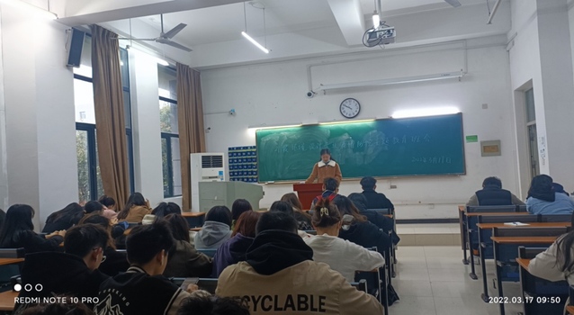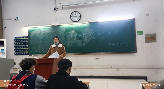 2022年3月17日上午9:35,21級環(huán)境設(shè)計專業(yè)疫情防控主題教育班會在37棟108教室召開,會議由輔導(dǎo)員吳嫻老師主持,主題是由吳嫻老師帶領(lǐng)我院環(huán)境設(shè)計專業(yè)學(xué)習(xí)疫情防控相關(guān)知識。